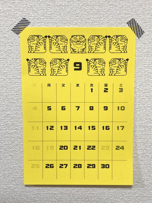 0 6 四角い虎のカレンダー9月 #イラスト #とら #カレンダー #黄色 #モノトーン 22/09/05 18:20