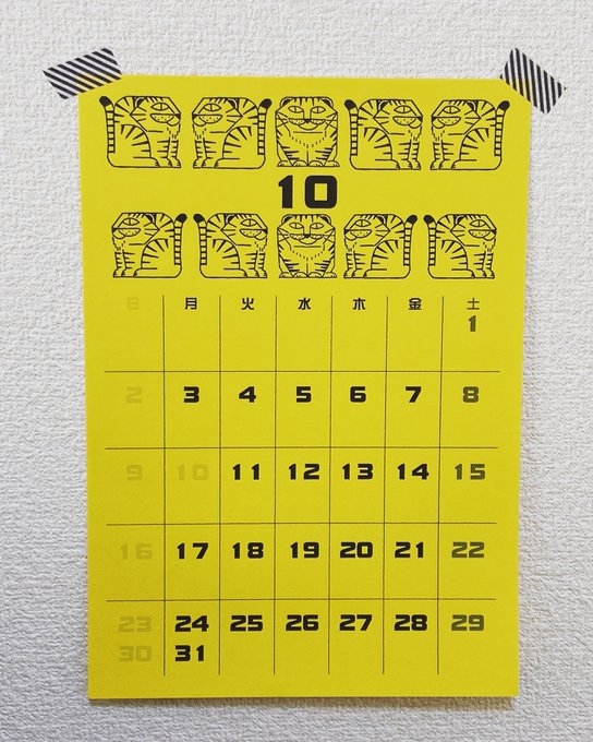 0 6 四角い虎のカレンダー10月 #イラスト #とら #カレンダー #黄色 #モノトーン 22/10/04 16:59