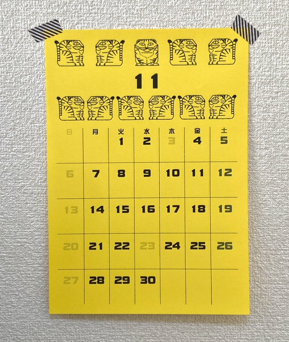 0 3 四角い虎のカレンダー11月 #イラスト #とら #カレンダー #黄色 #モノトーン 22/11/02 15:11