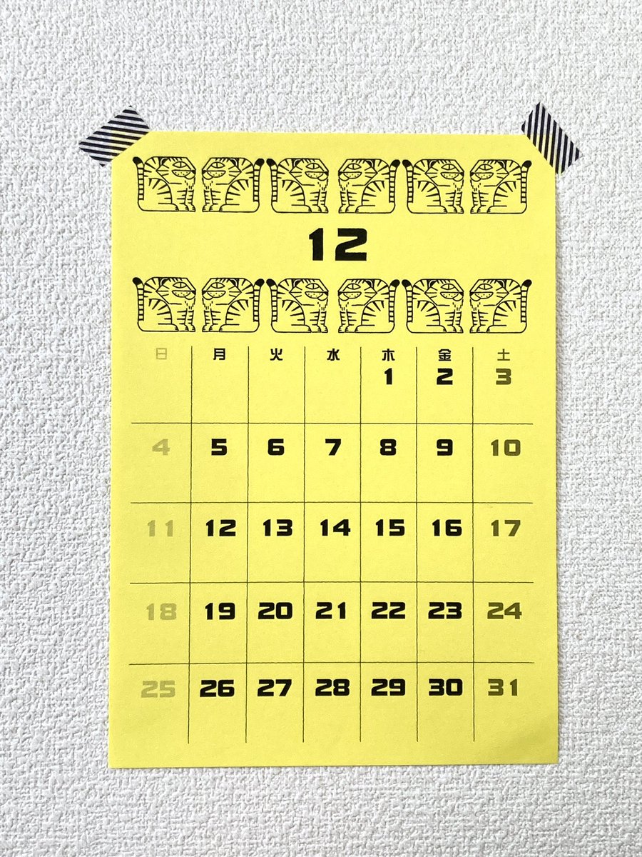 1 5 四角い虎のカレンダー12月 虎も今月で終わりですね。。! #イラスト #とら #カレンダー #黄色 #モノトーン 22/12/02 17:05