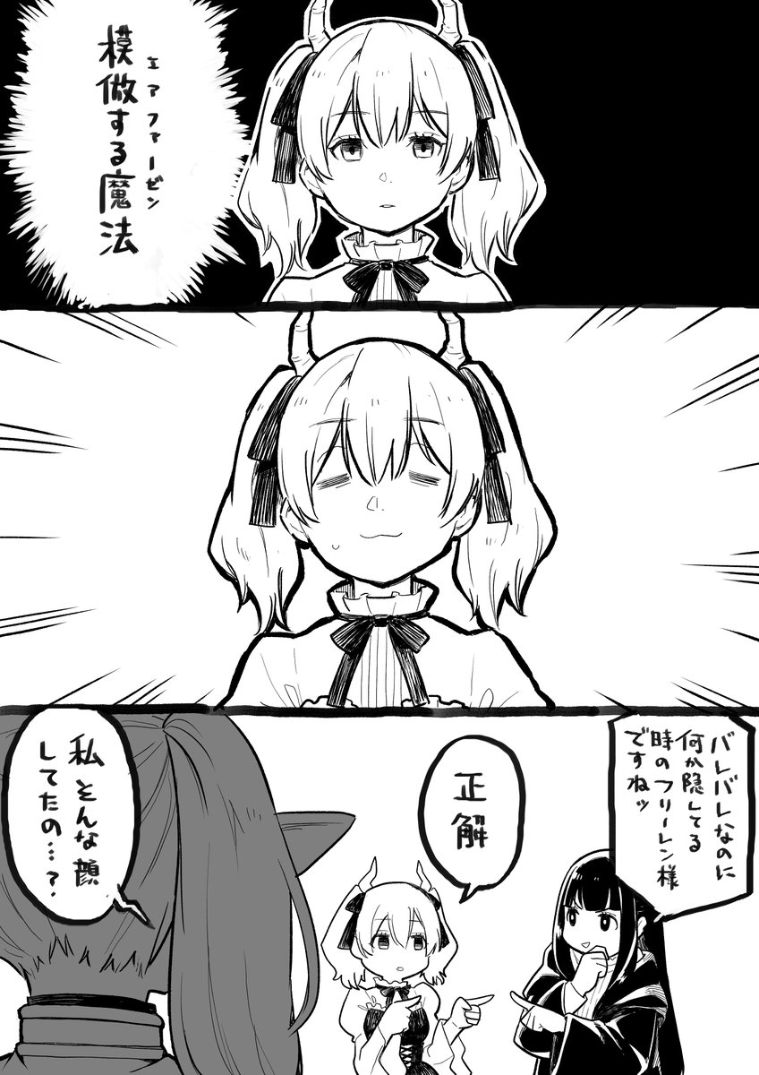 リーニエが描きたかっただけ #葬送のフリーレン フリーレン 「(表情筋を操る魔法を探そう)」