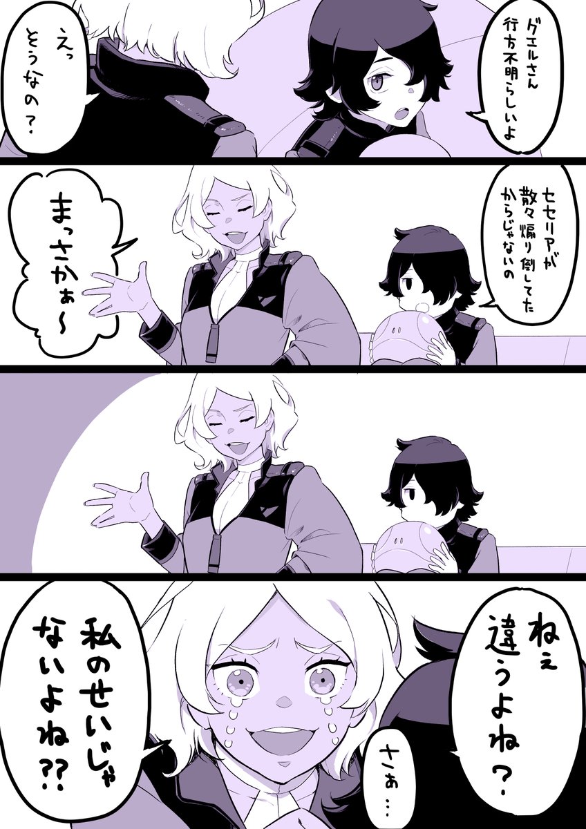 1267 6344 皆がクワゼロに出発したあとの、セセリアのセルフ懺悔室 ブリオン寮ラジオもあったし、前に没にしたネームだけどええやろと清書したやつです。 #水星の魔女 23/08/01 21:49