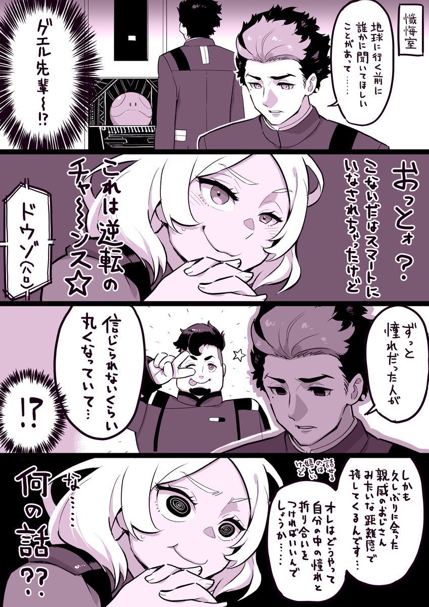 皆がクワゼロに出発したあとの、セセリアのセルフ懺悔室 ブリオン寮ラジオもあったし、前に没にしたネームだけどええやろと清書したやつです。 #水星の魔女