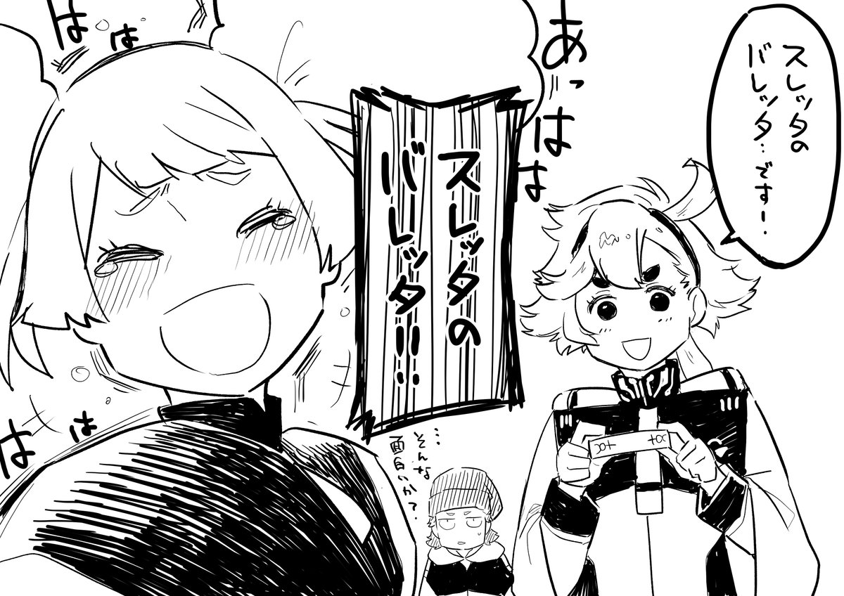 ラウダとペトラと大恩人フェルシー・ロロ これも24話始まる前に描き始めたのに… #水星の魔女