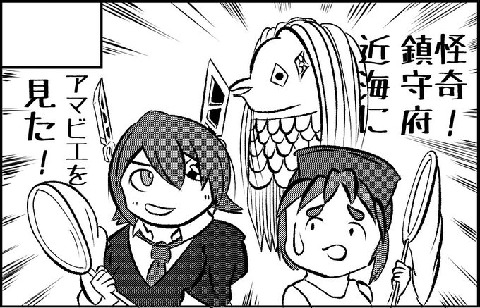 #艦これ版深夜の真剣お絵描き60分一本勝負 #艦これ版真剣お絵描き60分一本勝負_20200311 4/5開催予定の砲雷撃戦のサクカ描いてました。今まで描いてたの間に合わなさそうなのでネーム新しく切ってます。 まるゆと天龍がアマビエ探す本です