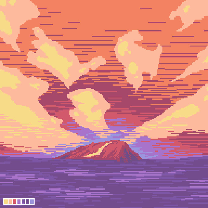 33 260 煙と雲が気に入らなかったので、ネップリを機に描きなおし。ちょっとだけ良くなったと思います。 #pixelart #ドット絵 21/07/06 17:17