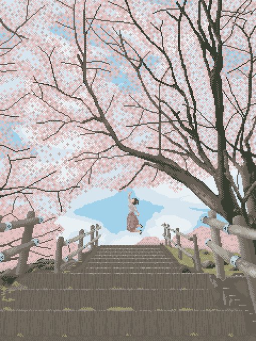 23 162 #春の創作クラスタフォロー祭り 風景がメインとなるドット絵を打っています。 22/03/23 18:26