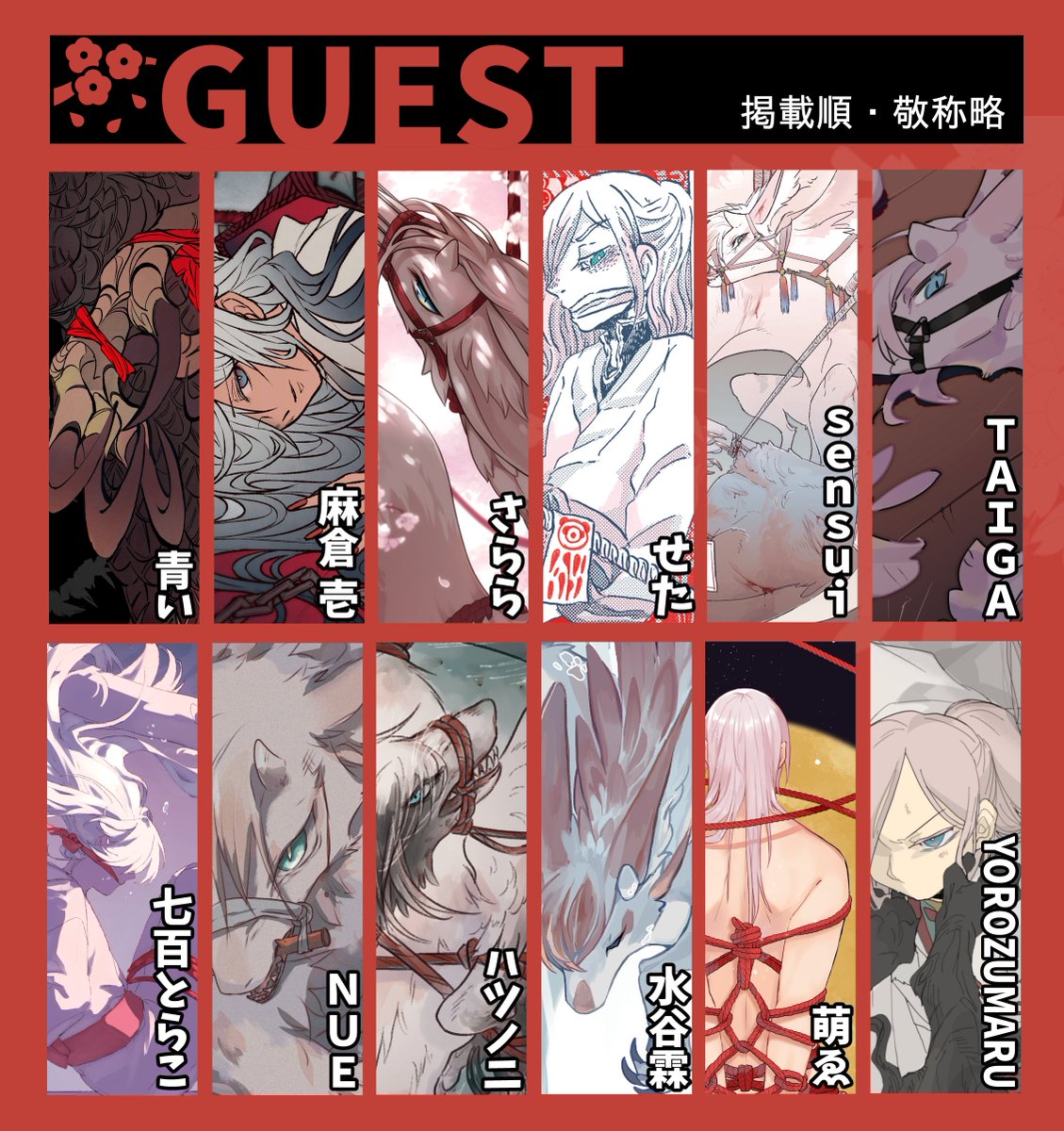 131 670 【5/6 #けもケット13 新刊】 創作龍拘束本「花咲籠ノ龍」 2020年発行のイラスト本に新規描き下ろしやSNS掲載作品を追加し、12名のゲストをお迎えした超豪華版です🌸 A5変形 全年齢向け 64ページ 23/04/06 21:47