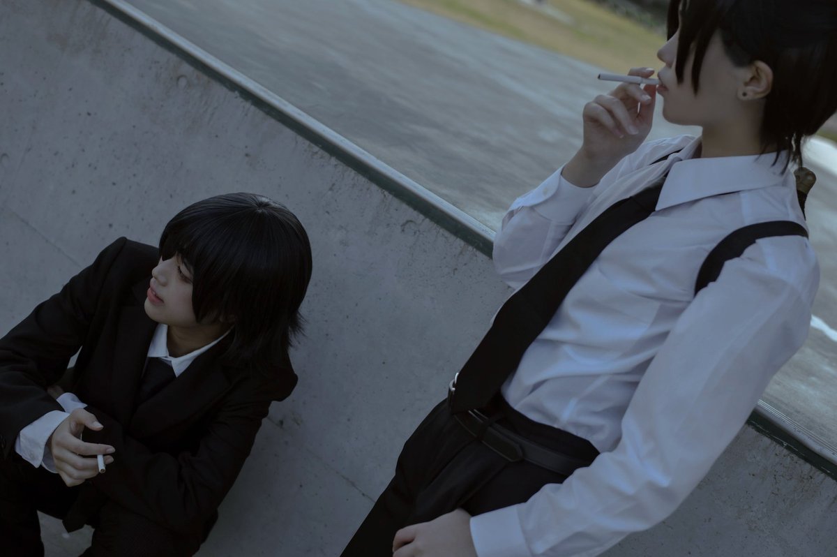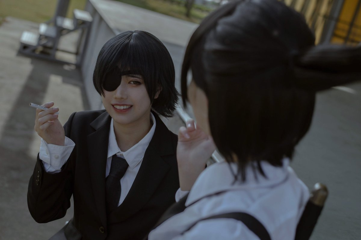 cos/ チェンソーマン__姫野先輩 そりゃアキ君にタバコの味教えたのは私だもん🚬 早川アキ⏩@siromi_v2 姫野先輩⏩@meee_ganbaru photo⏩@_jun__k #のんのここすぷれふぇす #チェンソーマン #chainsawman