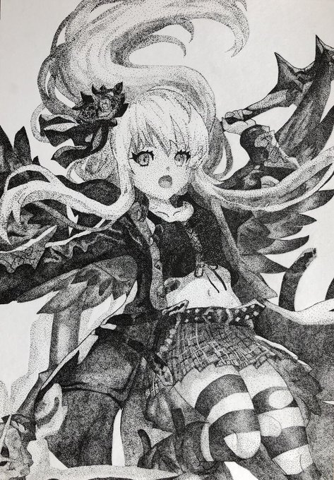 19 78 2作目です!ただのモノクロアートじゃありません! 小さな点のみで描いた点描画メイ 拡大してご覧下さい! #オセロニアート #オセロニア 21/05/06 00:01