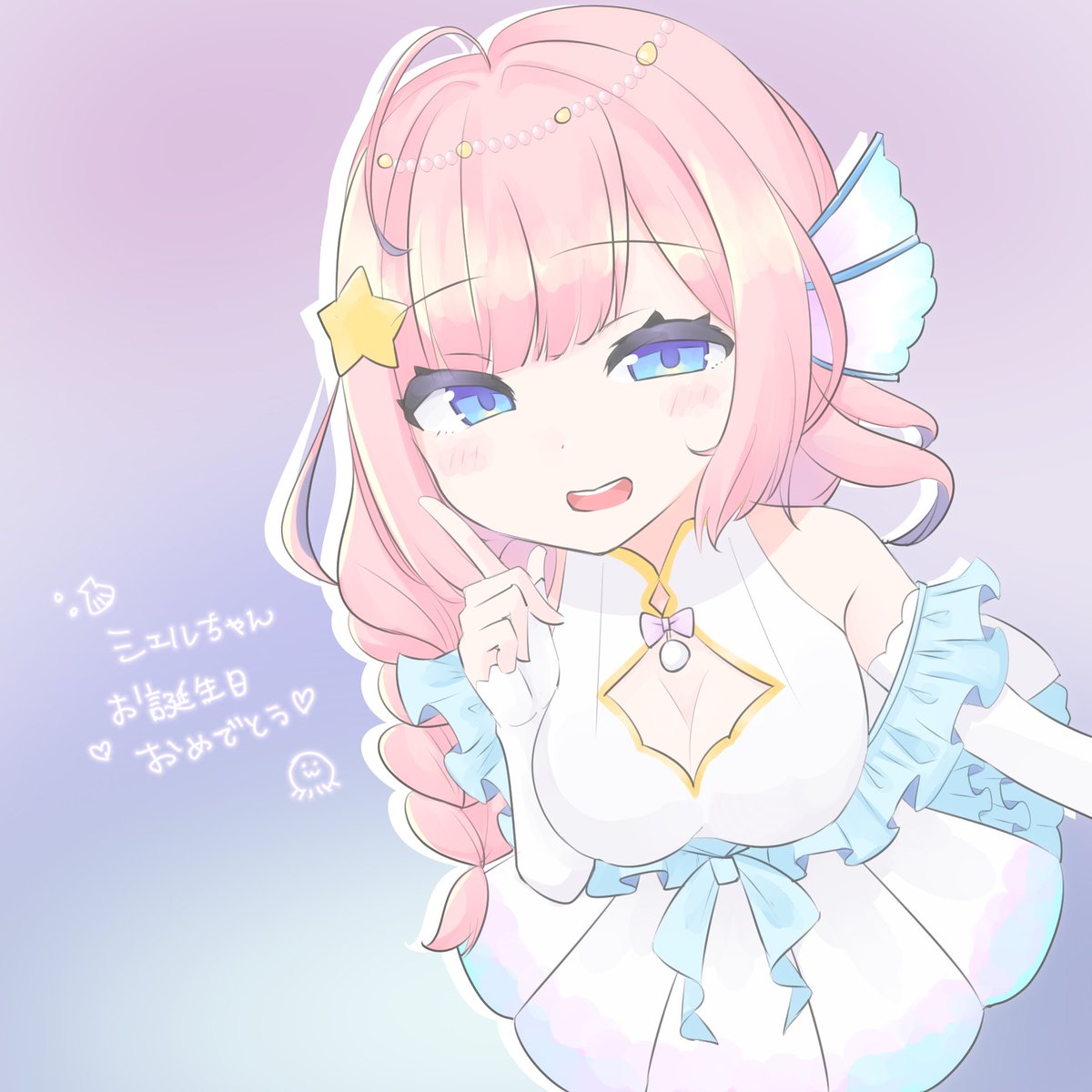 お友達のVtuber海月シェルちゃんのお誕生日イラスト描きました #シェラート