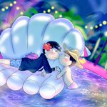 大遅刻ですみません🙇💦 「夏至」中国のとある地方では夏至にライチ食べるの流行ってるらしいので…ライチに見えませんが😂 藍松兄さんは皮を剥く係で僕は食べる係。ノワール藍桃で。 #百派繚乱ワンドロワンライバトル