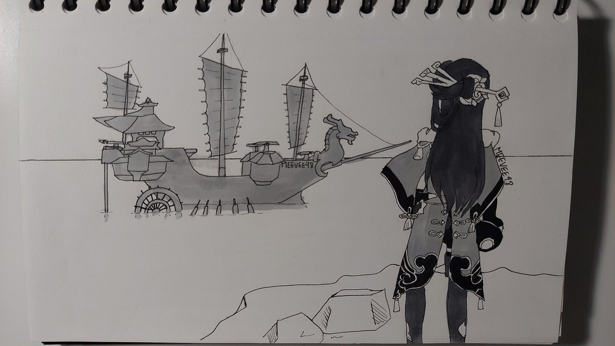 #inktober2021 day 22 - Open Yanfei has to constantly open her codex to help people of Liyue with their legal issues #inktober #Yanfei #GenshinImpact #原神