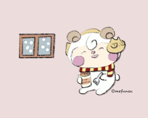 1 66 雪が降る街よ☃❆ ライチメリー「スープが五臓六腑に沁みわたるぅ」 #フルメリ #ライチメリー #羊 #羊毛 #羊毛フェルト #大雪警報 #大雪 #snow #snowman #雪だるま #カップヌードル #カップ麺 #ラーメン #noodles #スープ #醤油ラーメン 21/12/19 14:33