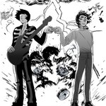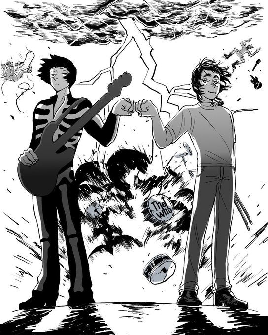〜ザフーのリズム隊短歌シリーズ〜 その①🌙🐃 フォロワーさんとリズム隊イメージの短歌と絵の共作をしました! これは私が描いた絵のイメージでフォロワーさんが短歌詠んでくれた編!!ちょういい歌…………