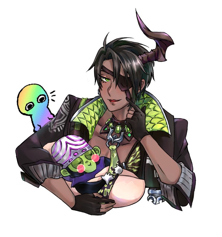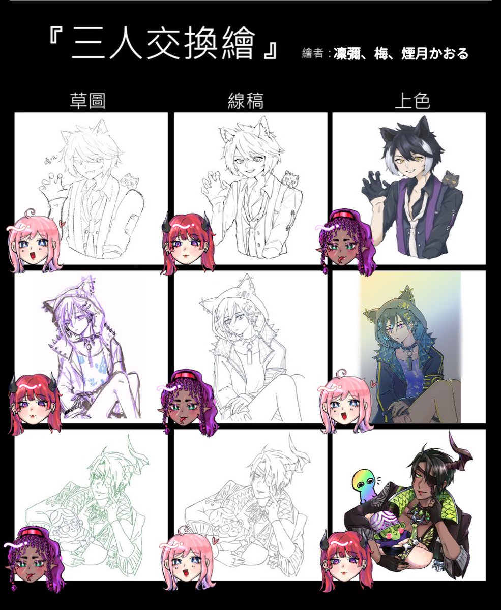 快樂交換繪 太喜歡大家ㄌ⋯ 魔人抱魔人啾啾(O @Rinmi_Bob @kemuri_tsuki ..。o*゚.・♡ #オウ画 #シ絵ン #イヅル描いたぞ