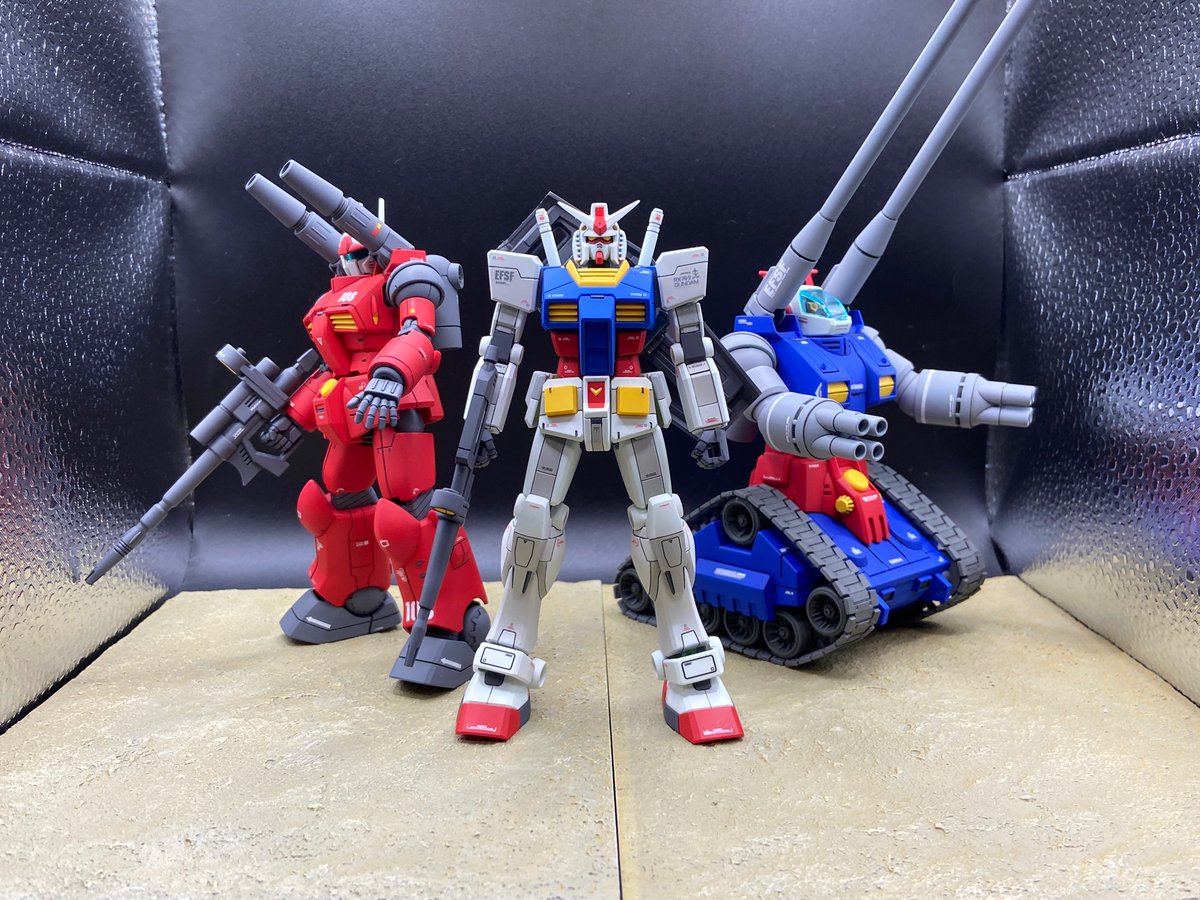 V作戦始動! ガンダム・ガンキャノン・ガンタンクここに集う! #ガンプラ #ガンプラ好きとつながりたい #ガンプラの画像貼るとRTされると聞いて #ガンプラはどんな自由な発想で作ってもいいんだ