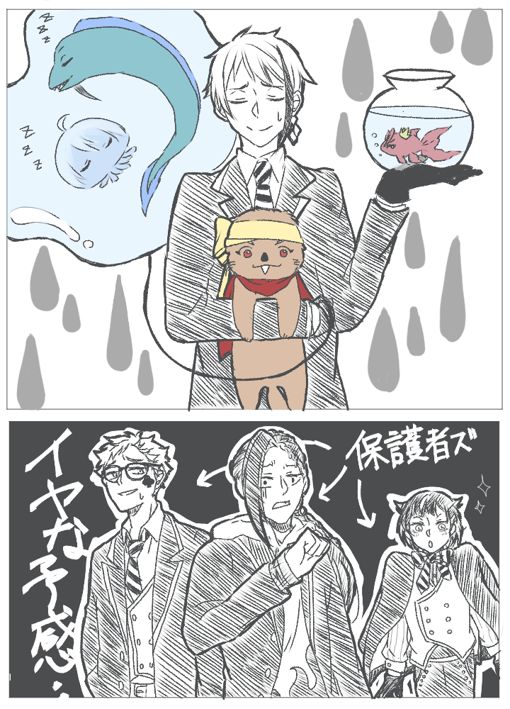 フロイドのあだ名通りに変身した2年4人と、その保護者ズ。 の話を描きたいけれどもここで力尽きたwww この海洋生物たちのワチャワチャ、描けたらいいなww 多分カリム中心になるとは思うけれどwww ジャミル・ジェイドの保護者感が描ければいいのだがw #ツイステファンアート
