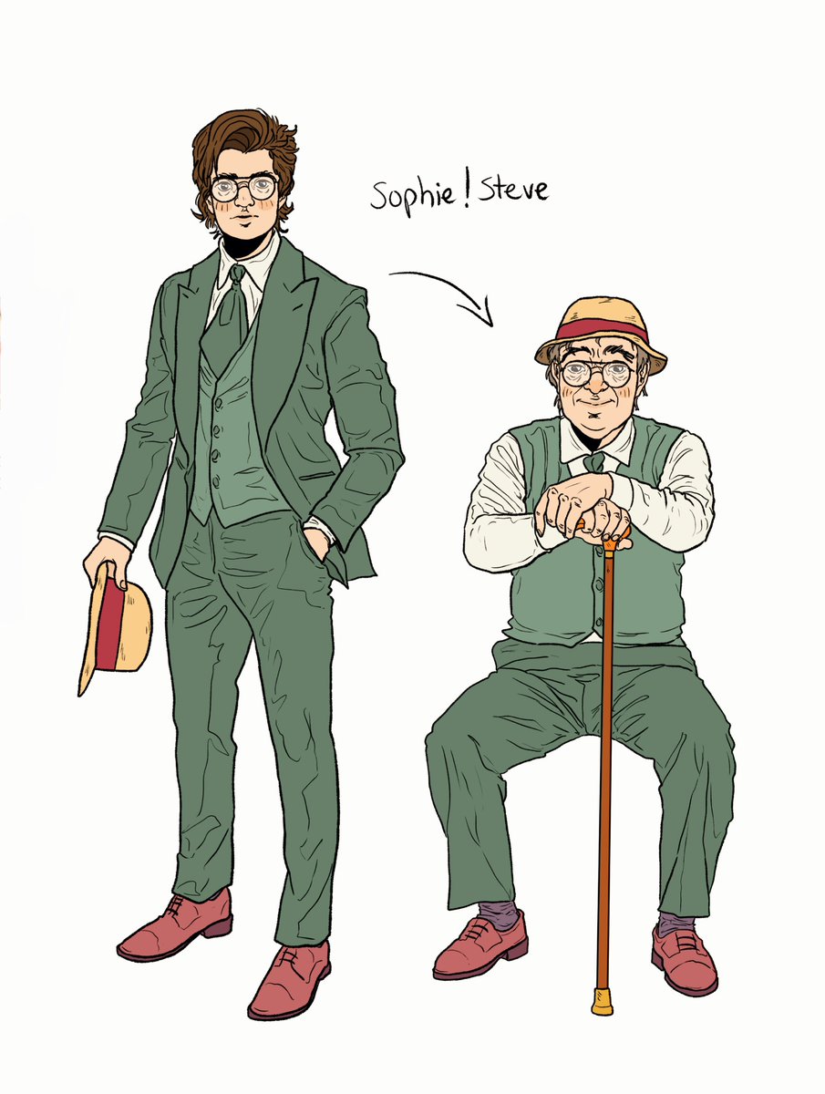 presenting the first of a set of designs for the steddie!howl's moving castle au no one asked for but I'm indulging myself in greatly hehe #steddie #StrangerThings old man stevie is making me weep