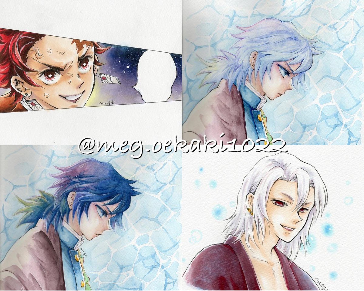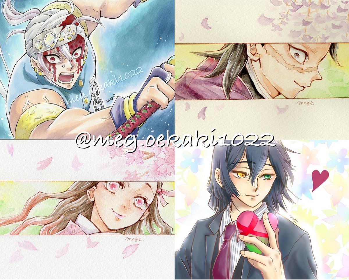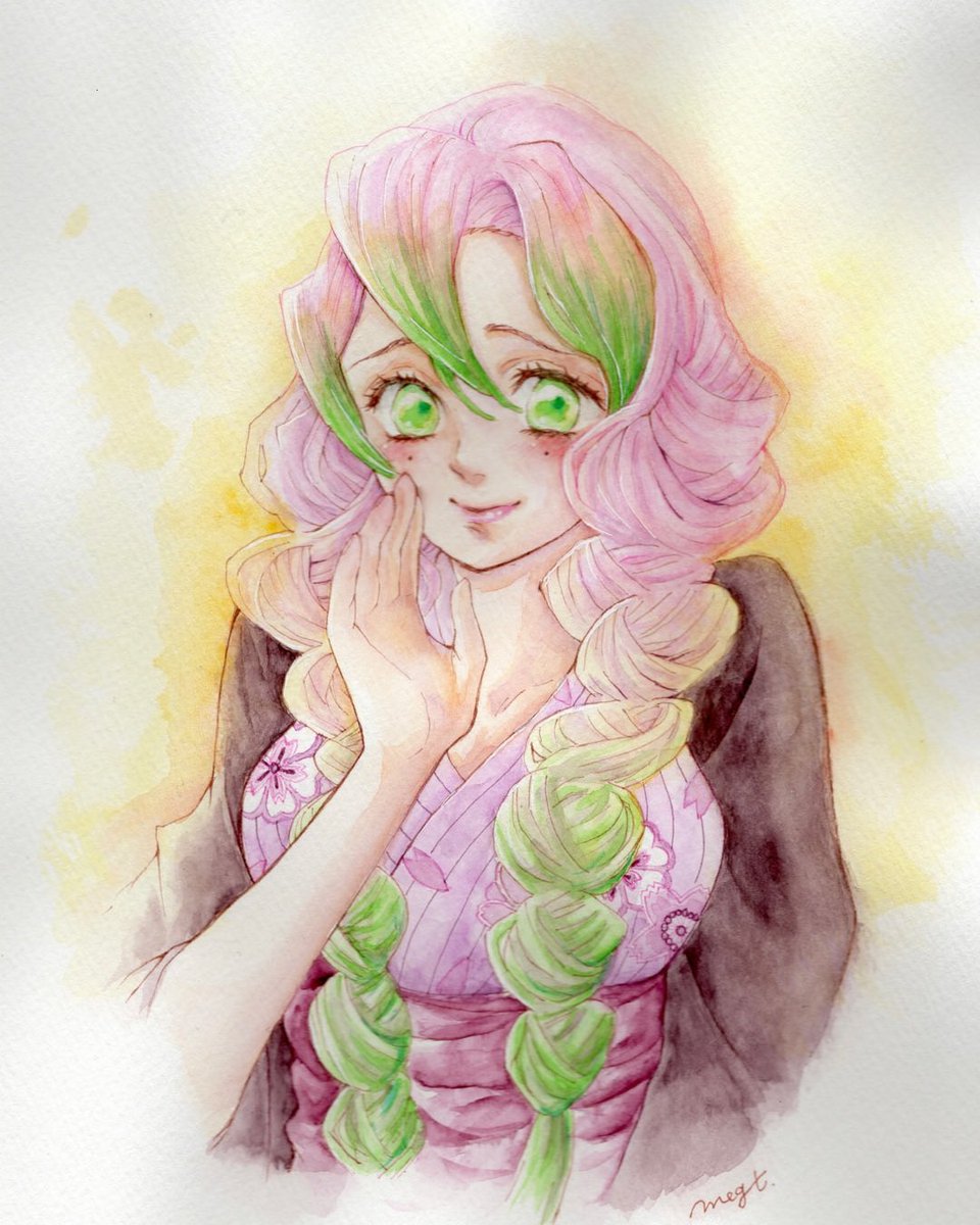 皆さんの素敵な蜜璃ちゃん見ていたらお誕生日が終わってた🤣💦 おめでとう㊗️‼️ 大好きな人達と美味しいものを沢山食べて笑っていて欲しい💗 大好き🥰🍡💕 #水彩 #模写 #甘露寺蜜璃生誕祭2023 #甘露寺蜜璃誕生祭2023