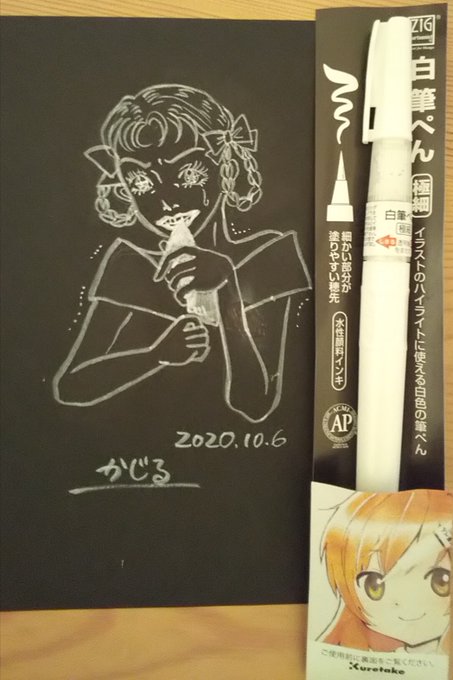 仕事→書道からの事務キチでインクトーバーというものを知り。ちょうどインクのカートリッジを買いに行ったところで!早速お絵描きできるの嬉しい。 呉竹のペンは1つも持っていなくて、購入してみた白筆ペン。 こんな時間なのでさらりと。 「かじる」 #inktober2020