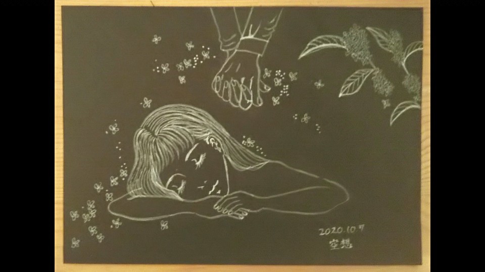 本日も呉竹の白筆ペンで。 空想→金木犀をイメージしたので花言葉を調べてみたら、今日の誕生花という偶然。色々ある花言葉のなかで、私には「陶酔」が一番しっくりきました。 #inktober2020