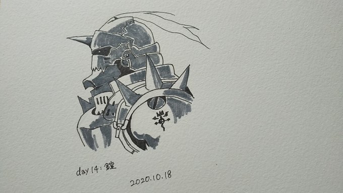 このイベントがなければ描くこともなかったであろう鎧を、人から借りることがなければ読むこともなかったであろう漫画の登場人物から描いてみた 鋼の錬金術師、めっちゃ泣きました。0巻を読んではじめて作者が女性だと知りました。 #inktober2020
