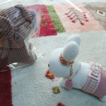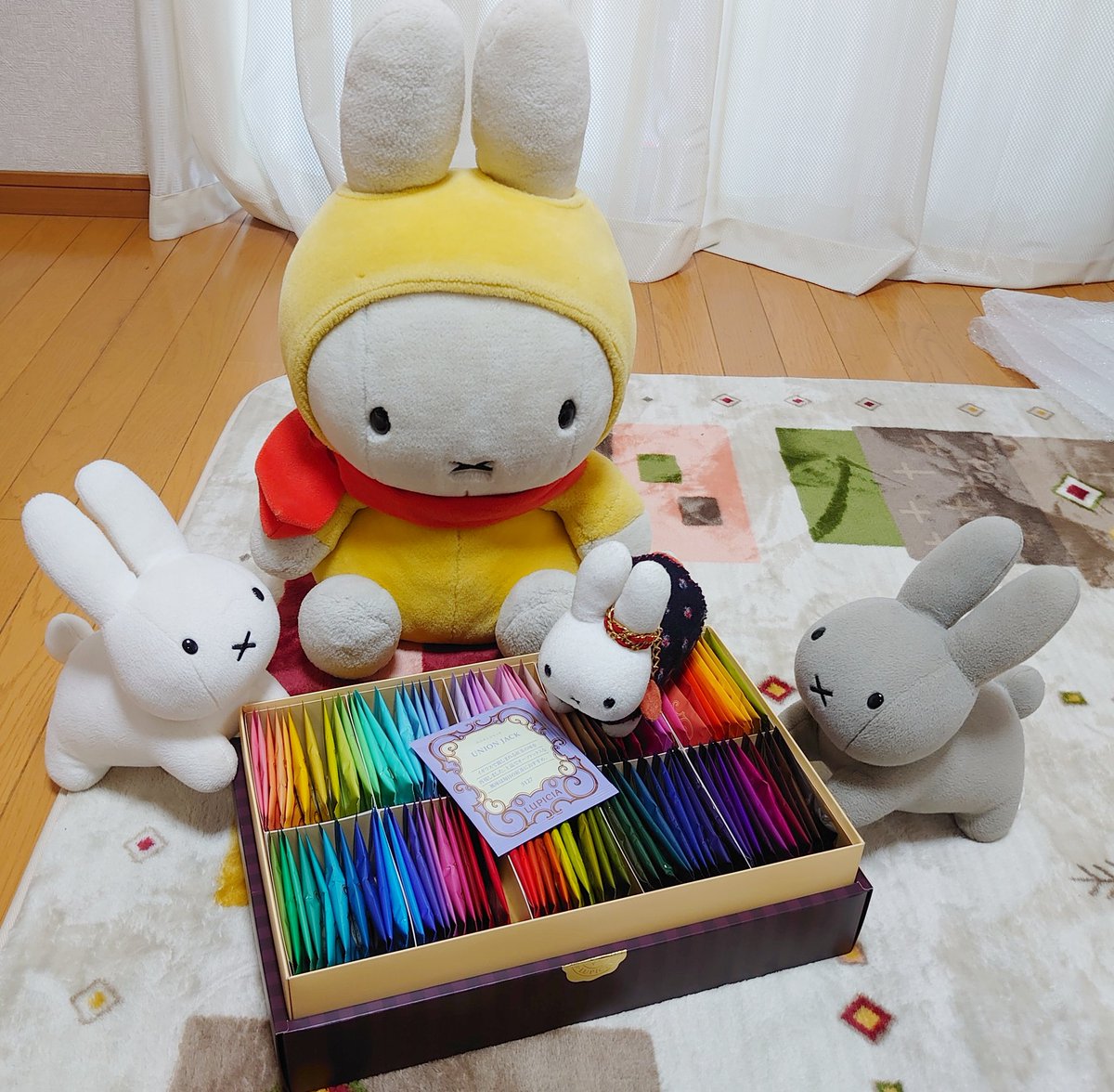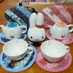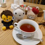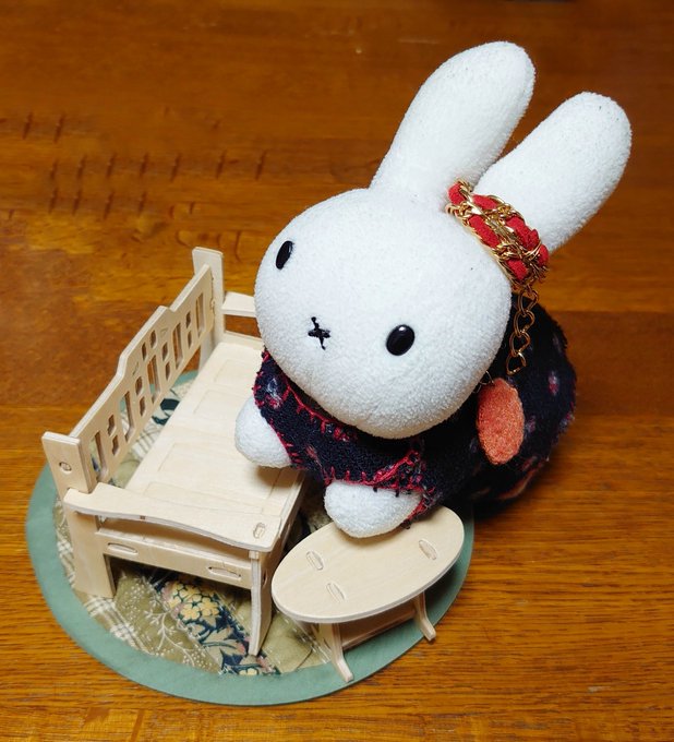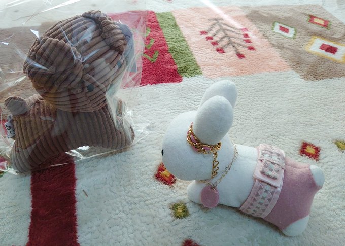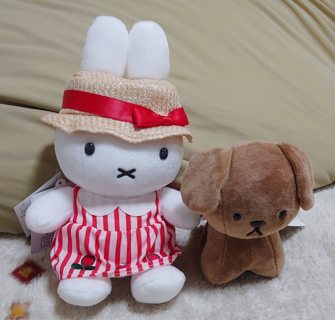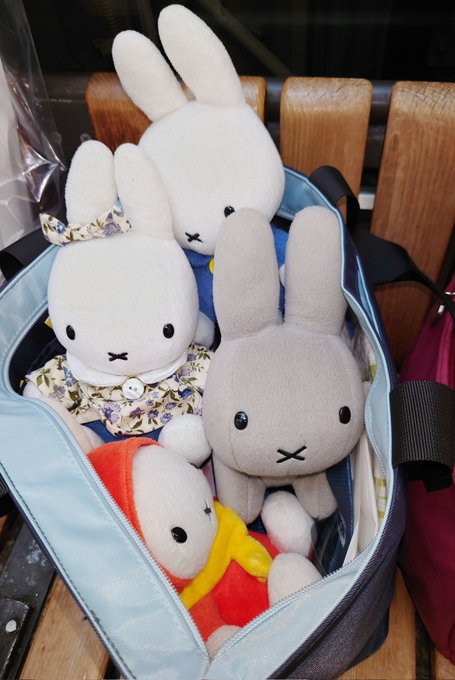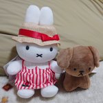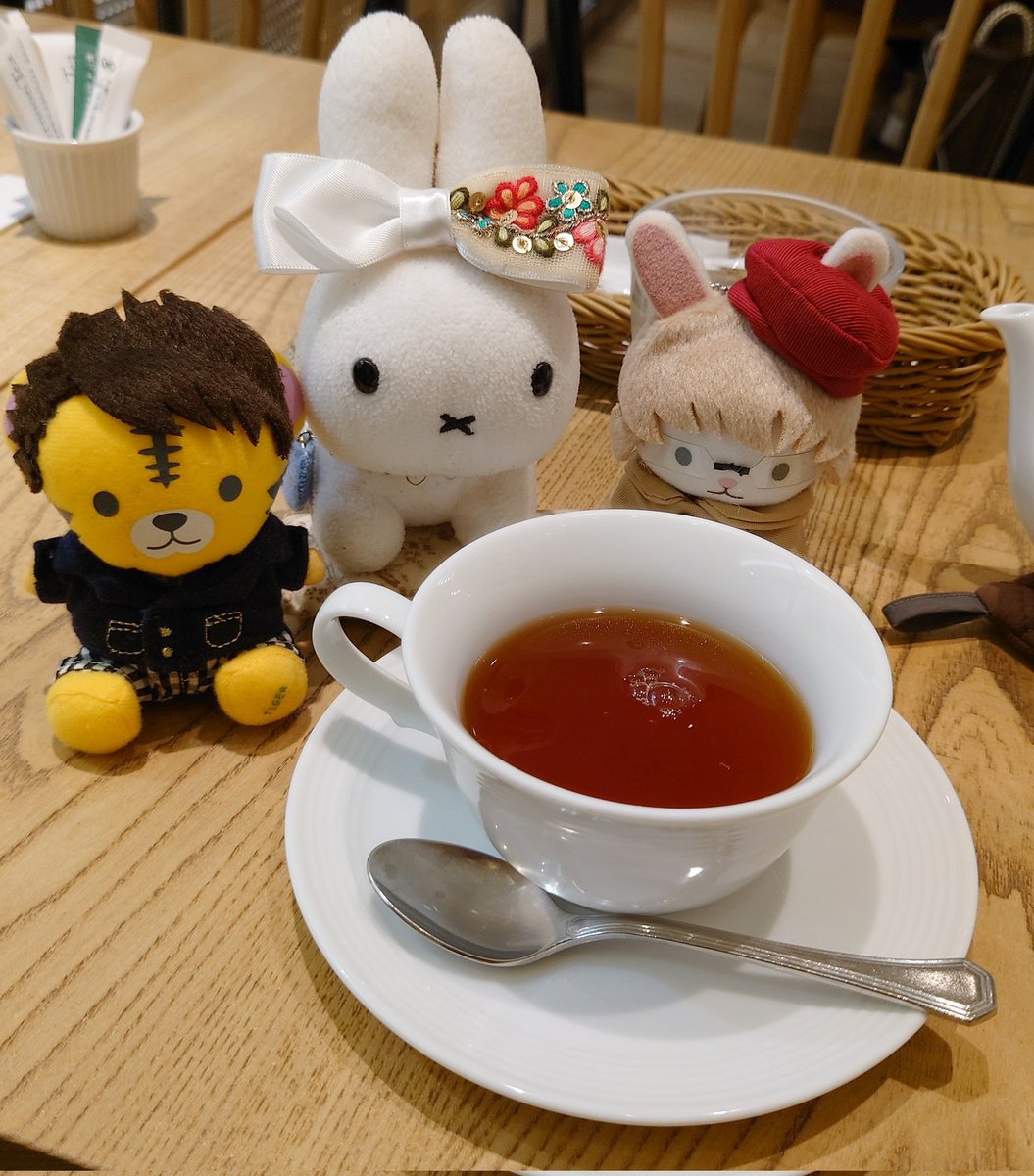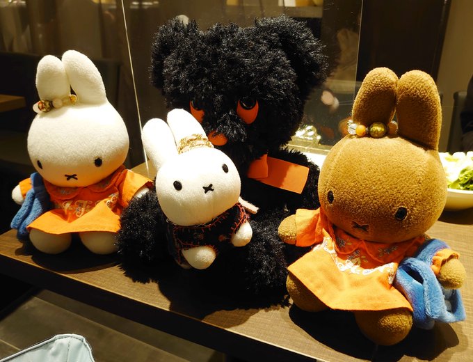 お料理来るまで隣のブラック・ベアちゃんとうちの子と記念写真 うさこはベアちゃんに抱っこしてもらってますw #うさこがいる暮らし #ミッフィー #メラニー #ブラックベア #ぬい撮り #dickbrunatable
