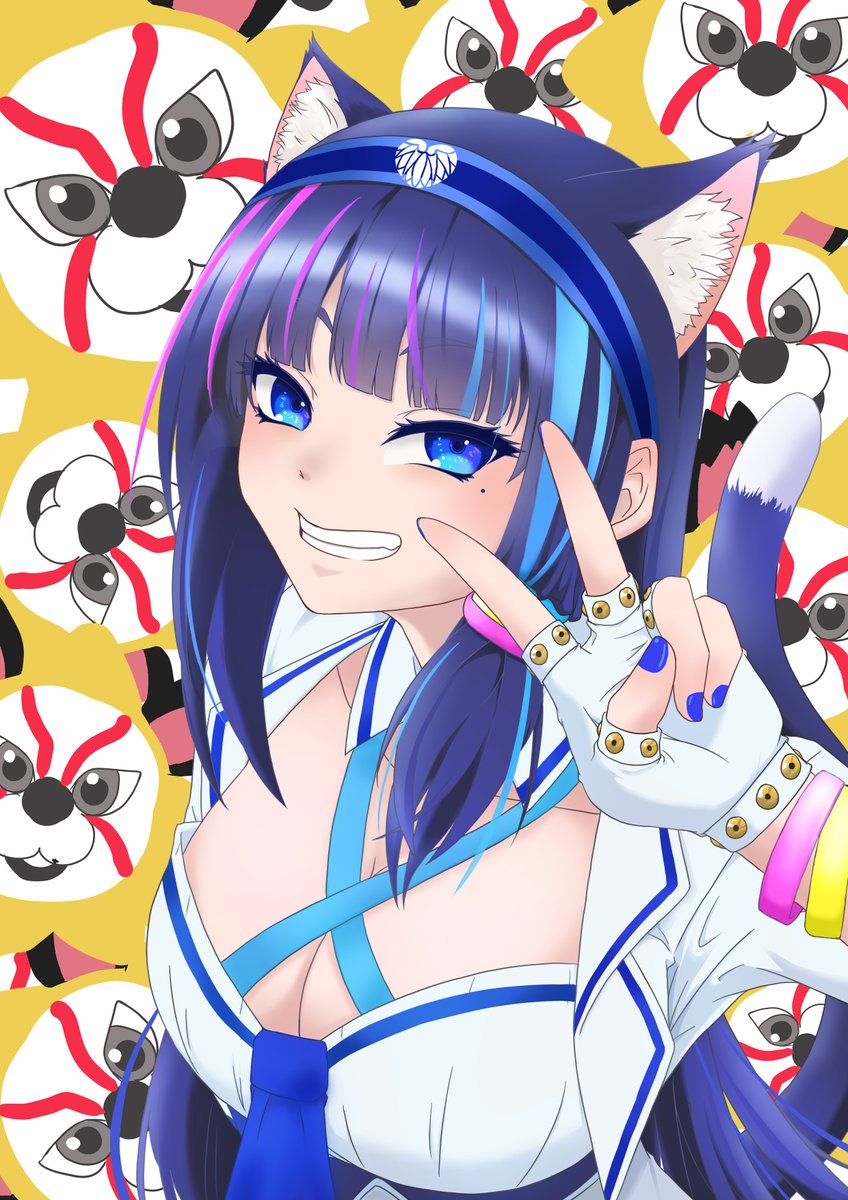 猫の日なので猫耳の葵ちゃん描きました!!!! 背景は10分で描いたノジョさん増殖させただけだから許してww #葵の絵 #猫の日