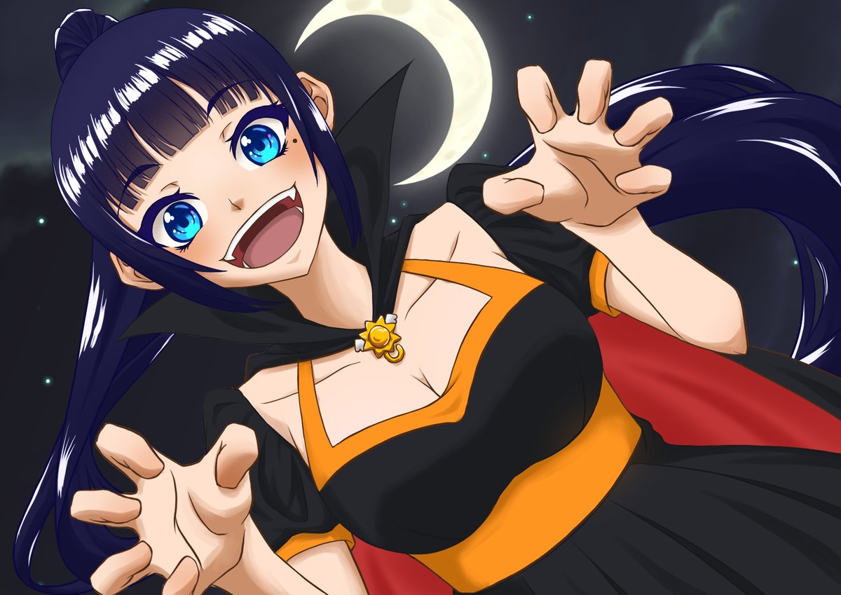 お菓子くれないと食べちゃうぞ~♪(逆光有りVerと逆光無しVer) #富士葵 #葵の絵