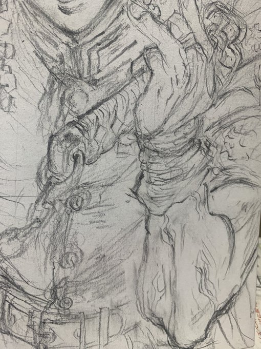 1日ゆっくりして疲労回復🤗 エンドロールの感動忘れられず、大好きな肘、腕💪🏼💎さま模写🕳✏️3Bは濃いです。 簡単に仕上げられるものではなかった😫 #アナログイラスト