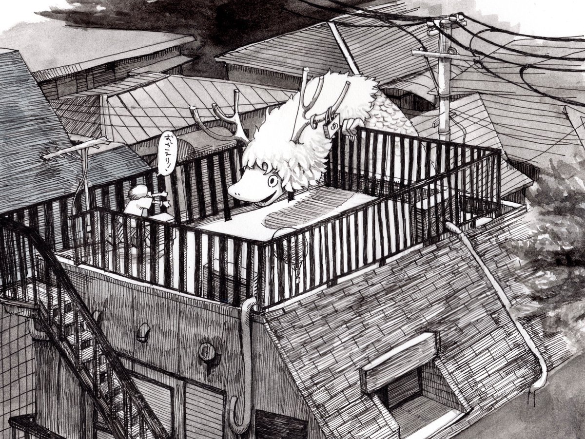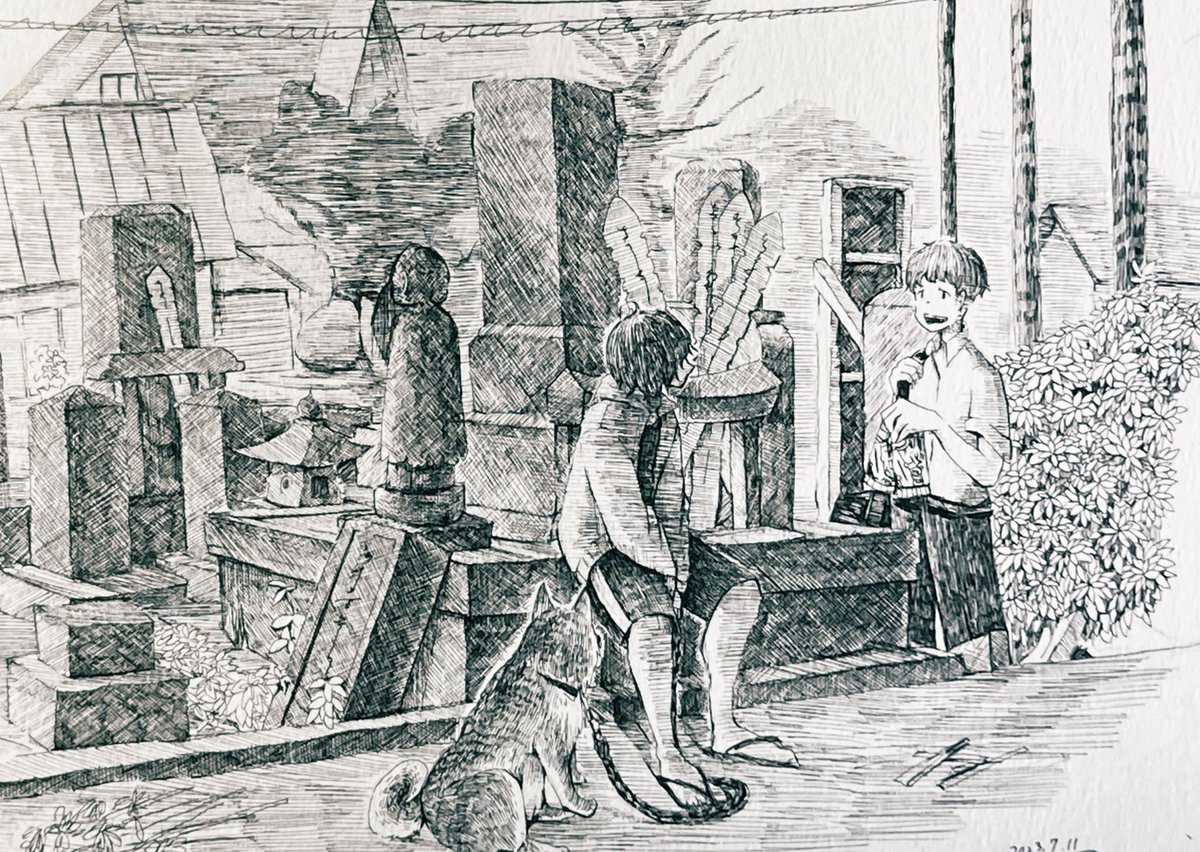 山あいの村は日照時間が短くて、この時期だって15時を過ぎれば肌寒かった。「おい、来てたのかぁ」健康優良児の見本みたいな男が俺を見て、からっとした顔で笑った。 #ペン画 #illustration