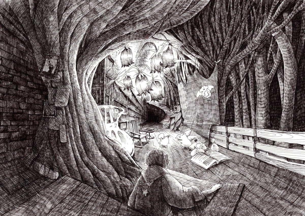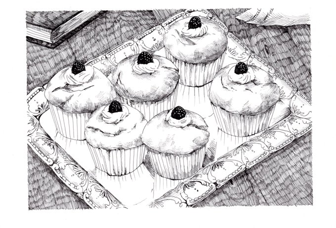 僕は朝からカップケーキを焼いた。いつもと全く同じ配合で、いつもと同じ温度で、同じ時間をかけて焼いた。 絵本「FómhaR」より抜粋 ▶︎booth.pm/ja/items/26119… #ペン画 #illustration #絵本