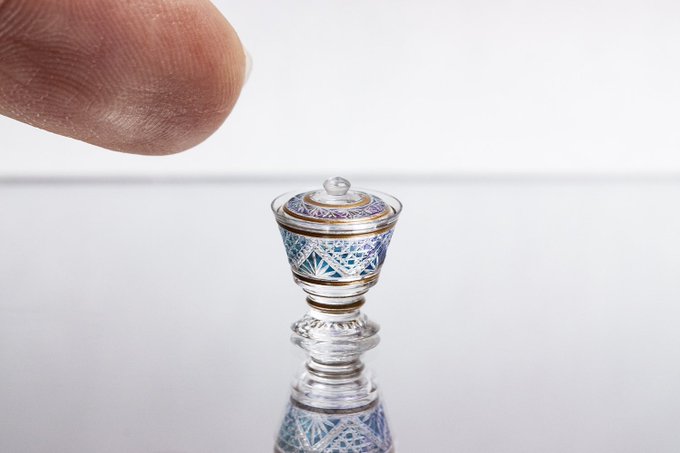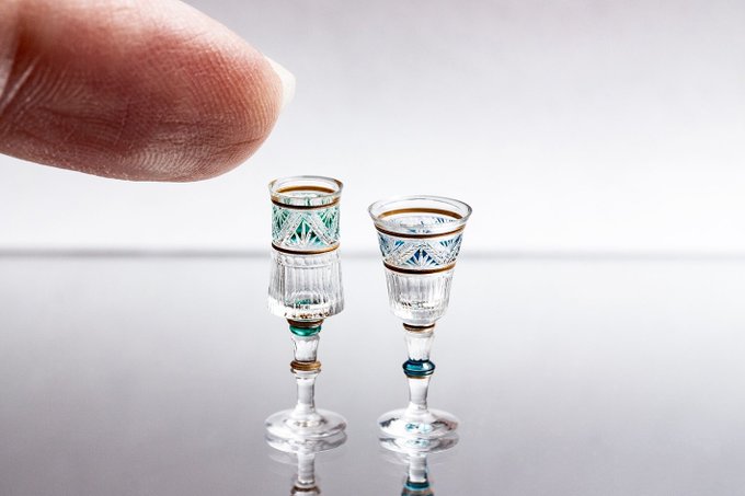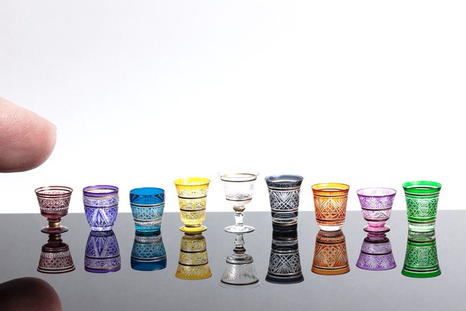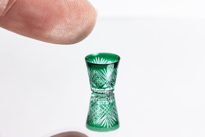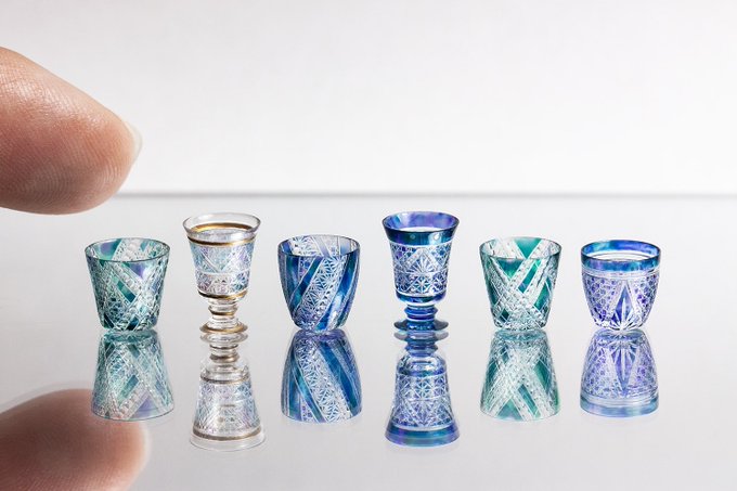 #関係者に届くまでリツイートされ続けると聞いて #私はこんな仕事がしたい 本物の切子作家さんとコラボさせていただいたりして同じデザインのグラスを作ってリアルとミニチュアの共演展示や販売をしたい いつかいつか、そうなれるように技術力とミニチュア再現力をもっと高めていきたい #ミニチュア