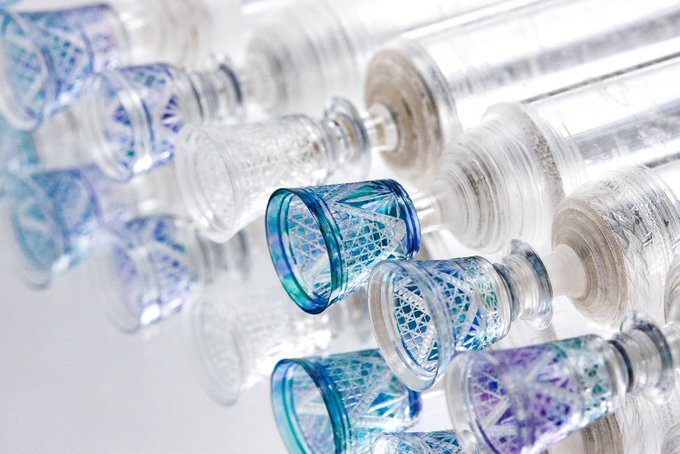 ミニチュア切子グラス2点 明日、25日21:00よりEtsyにて販売します 販売国は日本、イタリア、フランスです 販売開始しましたらTwitterでお知らせしますのでよろしくお願いします EtsyのShopページはこちらです↓ etsy.me/2PngqBP