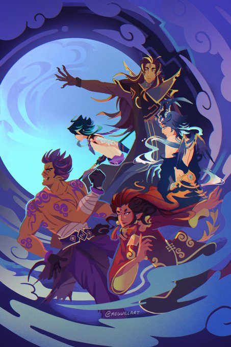 These drawings of Venti and Zhongli come to mind, and I do have plans to do more with this treatment #GenshinImpact | #原神 twitter.com/CheeseChase_/s…