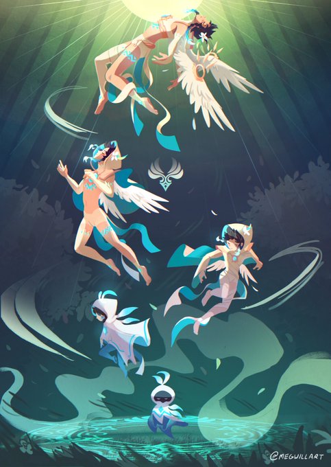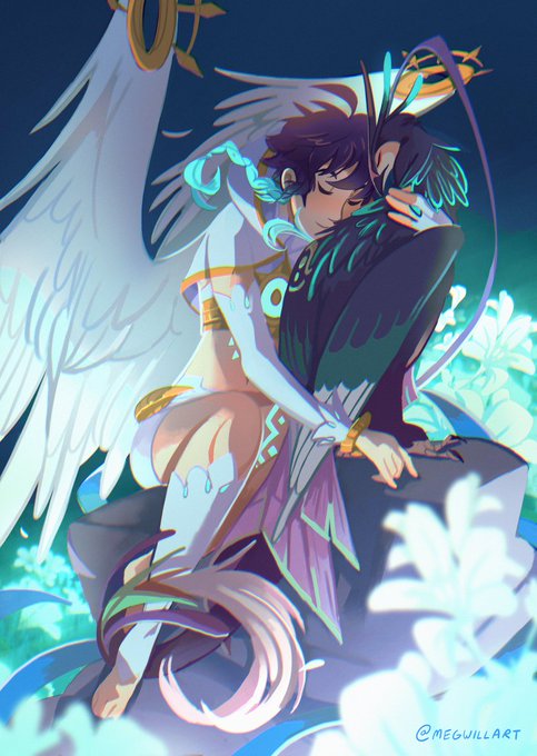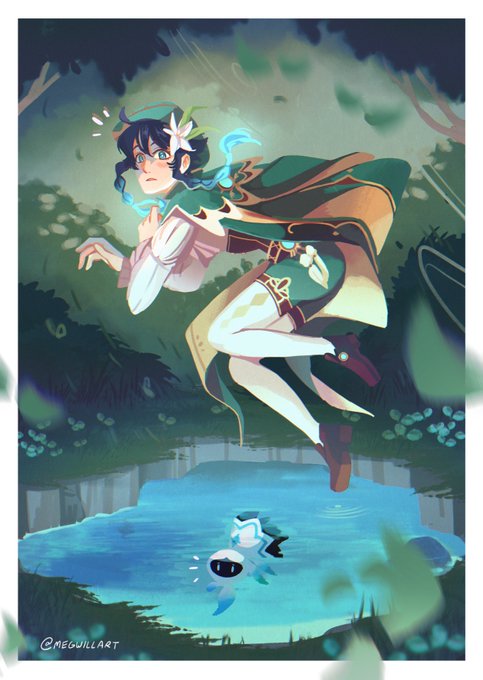 My Preview of a illustration I did for @xv_anthology It's to accompany @ori_writes 's story where Venti takes in a now small, feathery companion #GenshinImpact | #xiaoven | #hoyocreators