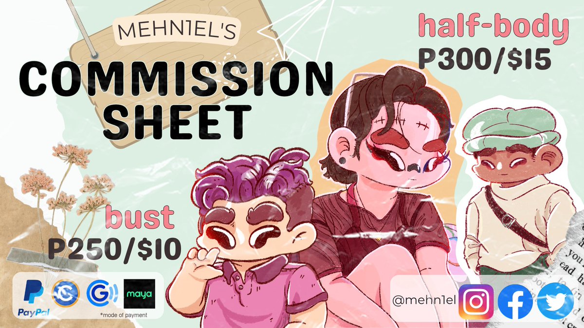 Hello! I'm mehn and here's my commission sheet for this month. DM me if you're interested. (RTs and likes are vv much appreciated) #ArtistOnTwitter #artph #commissionsopen