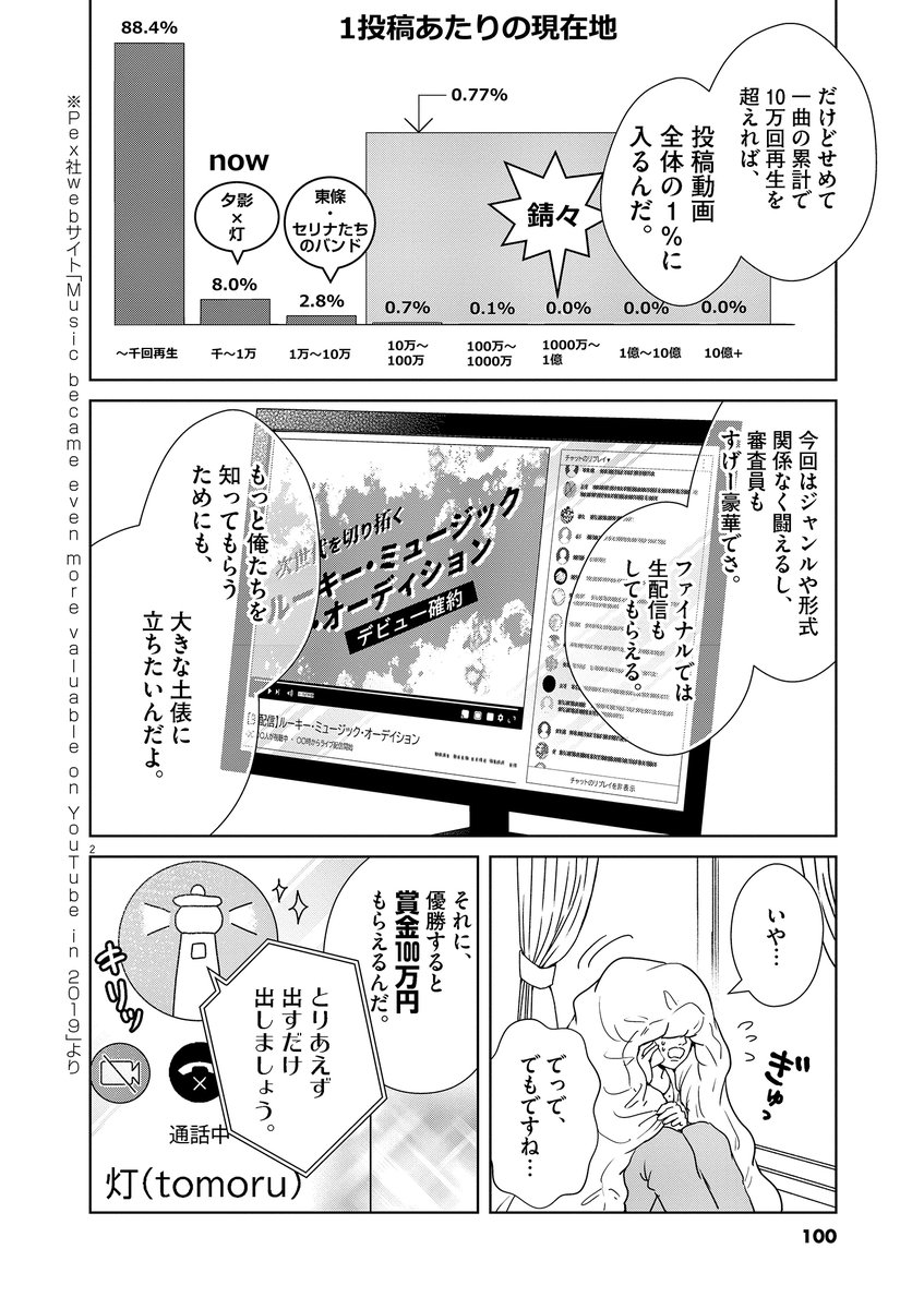 動画の再生回数はいつも2,3桁—…。 そんな凡才ボカロPと歌い手が 1年以内にデビューを目指す、 現代の音楽業界の物語。 【1話全58p公開!!】 spi.tameshiyo.me/AKANE01SPI/ #マンガが読めるハッシュタグ #ボカロ #ボカロP #歌い手 #茜色のコンポーザー #音楽