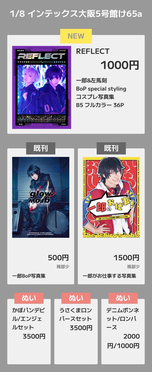 【新刊サンプル】 1/8大阪(5号館け65a) 1/29東京(東4ソ17b) 頒布 1⃣&🐴 🅱️o🅿️ special styling コスプレ写真集 「REFLECT」 B5 フルカラー 36ページ 1000円 ⬇️通販(2月頭発送) mei-online.booth.pm/items/4436307
