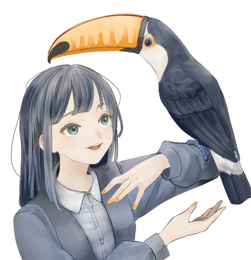 練習20。オニオオハシとおすまし。 #イラスト #女子 #オニオオハシ #illustration #illust #girl #toucan #tocotoucan