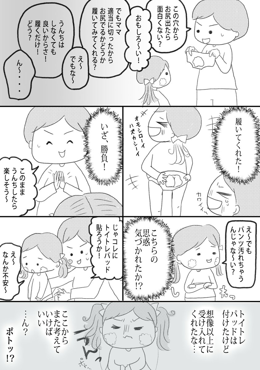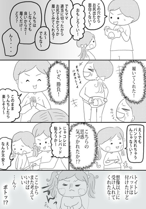 昨日の続き この作戦はパパチの提案でした。 聞いた時は「おなごの下着にはさみを入れるなど…」と思いましたが、思い切って賭けてみた。 さらに明日に続く #漫画が読めるハッシュタグ #イラスト好きと繋がりたい #子育て #トイトレ #育児漫画