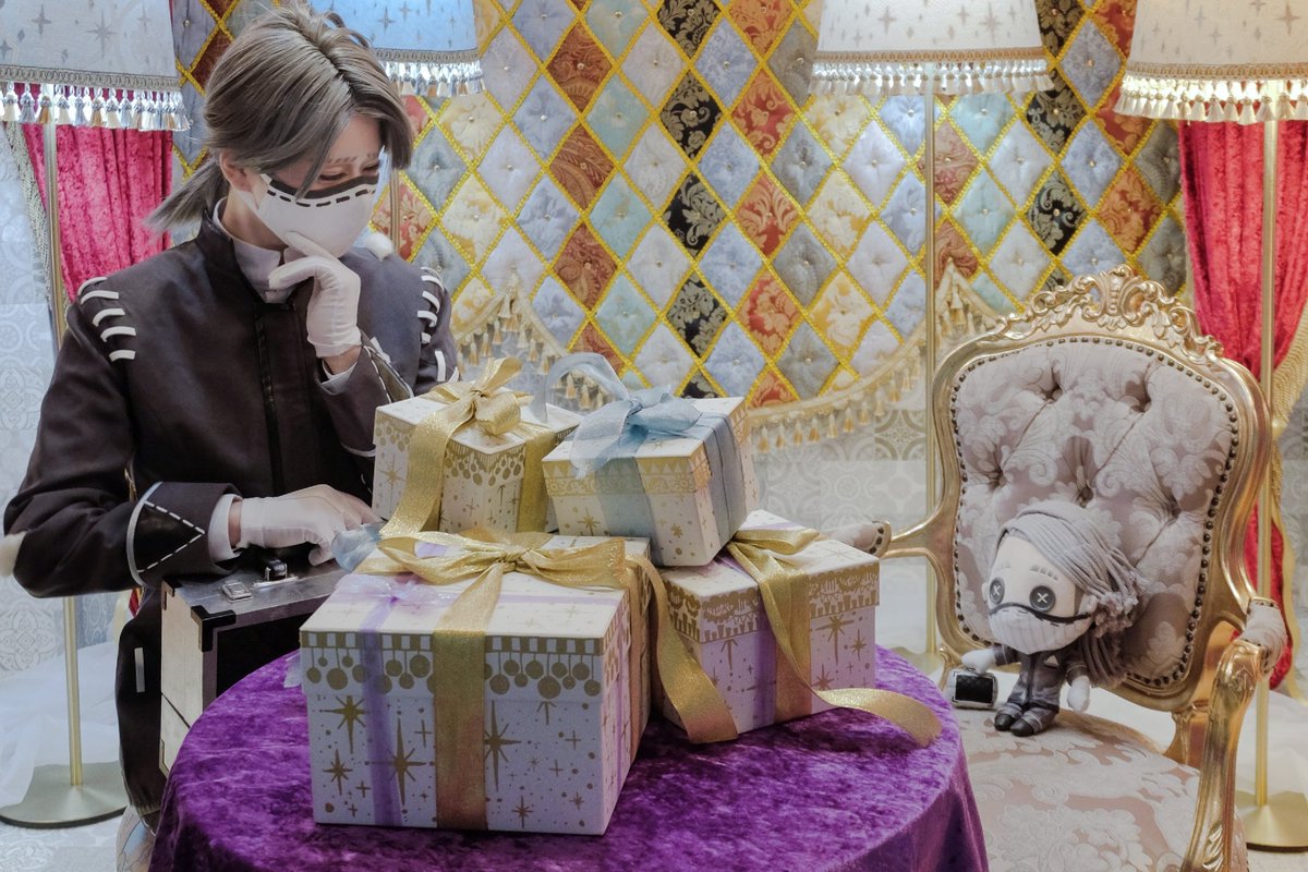 【 IdentityV 】 🎉HappyBirthday!🎉 「これ、2人にって…僕と……もしかして、君に…?」 「ぬ〜?」 photo by トクサ @kwtkk02 #イソップ・カール生誕祭2021 #jyacos