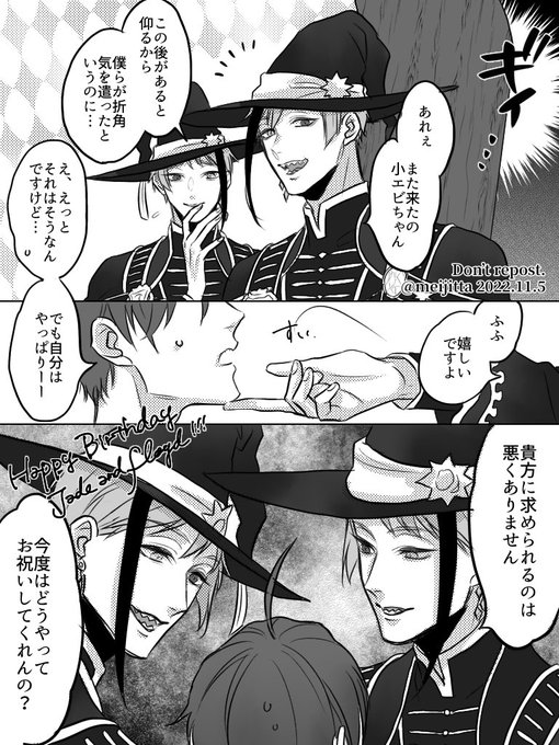 0 13 誕生日になんかせな!!!!と思って、昨日呟いてた🐍監♂描き始めたけど、監がこんな濁った目する展開になるからちっともハピバースデーじゃない 22/09/11 23:27