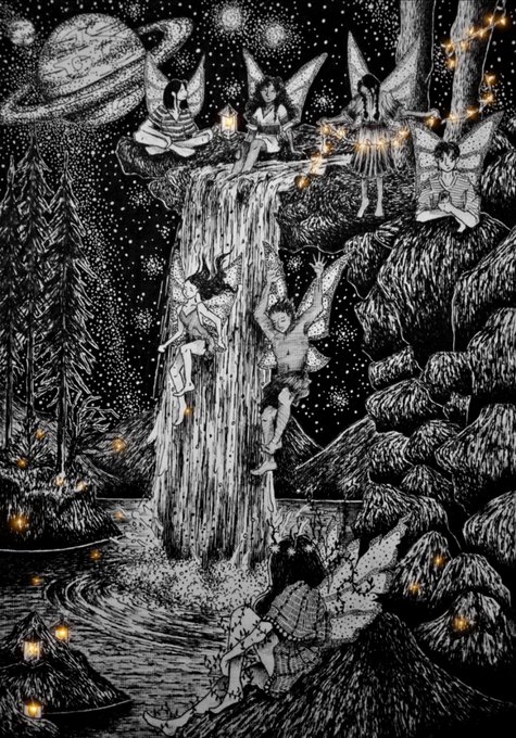 Jumping into the Undertow This was my final drawing for #Inktober 2021, with the word prompt being "Risk". It was either that the risk was diving off the cliff or joining in with a new group of people #artistsontwitter #inkart #penart #inkillustration #art #drawing