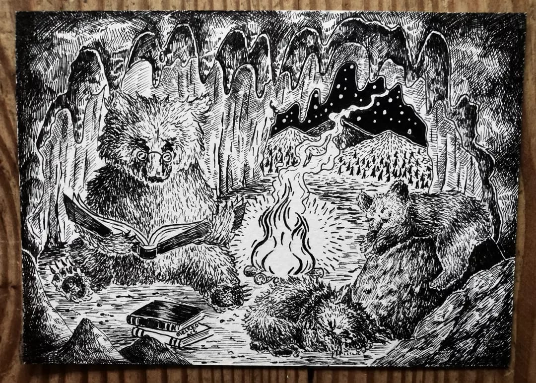 One of my favourites from #Inktober 2021, day 21, theme: Fuzzy. I love bears but haven't really drawn them before! I was also experimenting with how to add more texture. #artistsontwitter #art #inkart #penart #illustration #bear #drawing