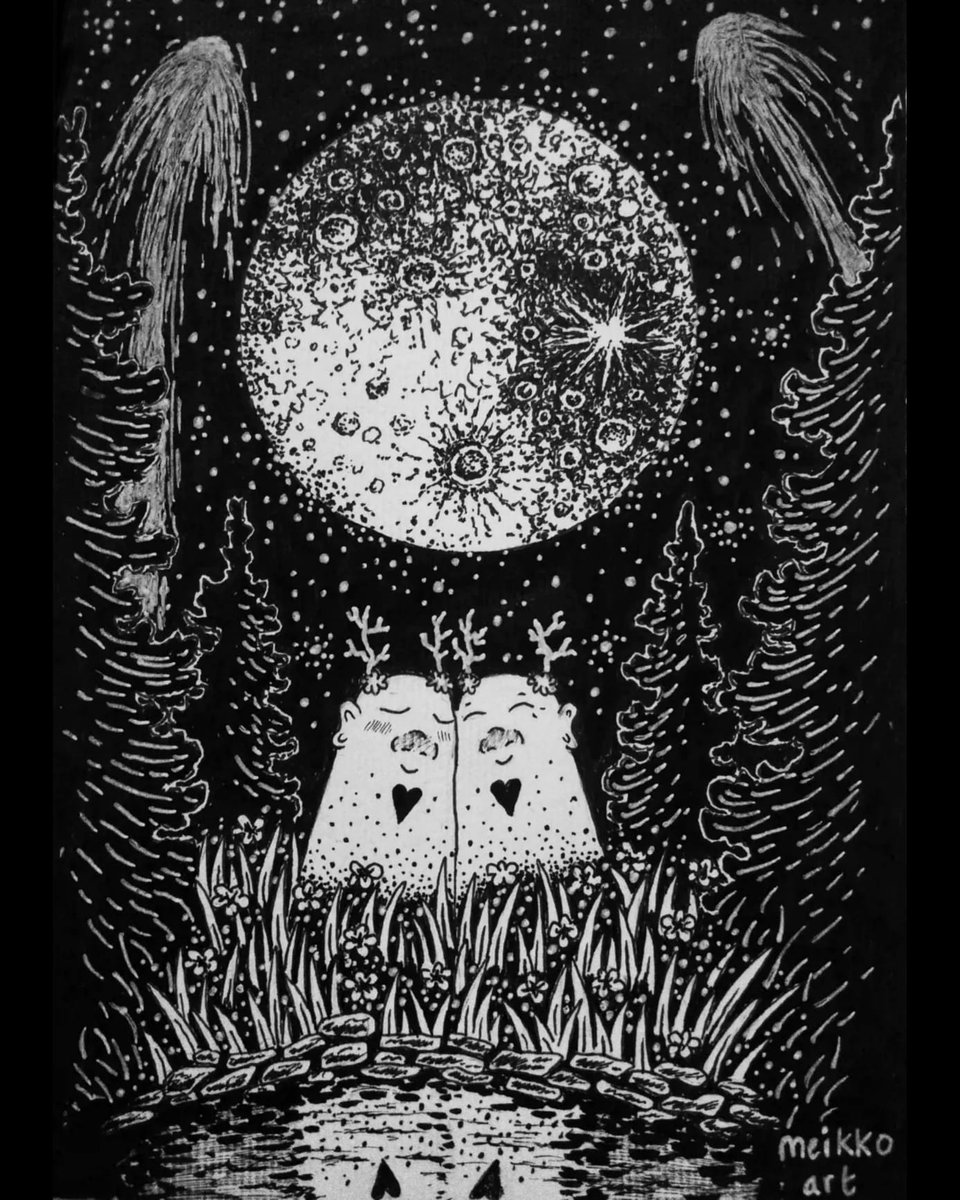 Moonshine I drew this for Valentine's Day this year. I am wanting to make prints as a side hobby for fun. If anyone has any tips, I would love to hear them! #artistsontwitter #art #inkart #penart #penandink #illustration #drawing #inkdrawing #valentinesday
