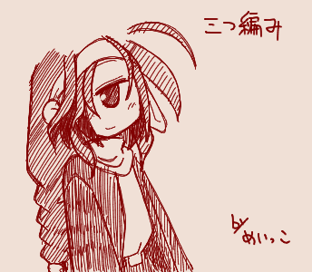 #仮単眼版深夜の真剣お絵描き60分一本勝負 イカン時間が過ぎてる!? 「三つ編み」