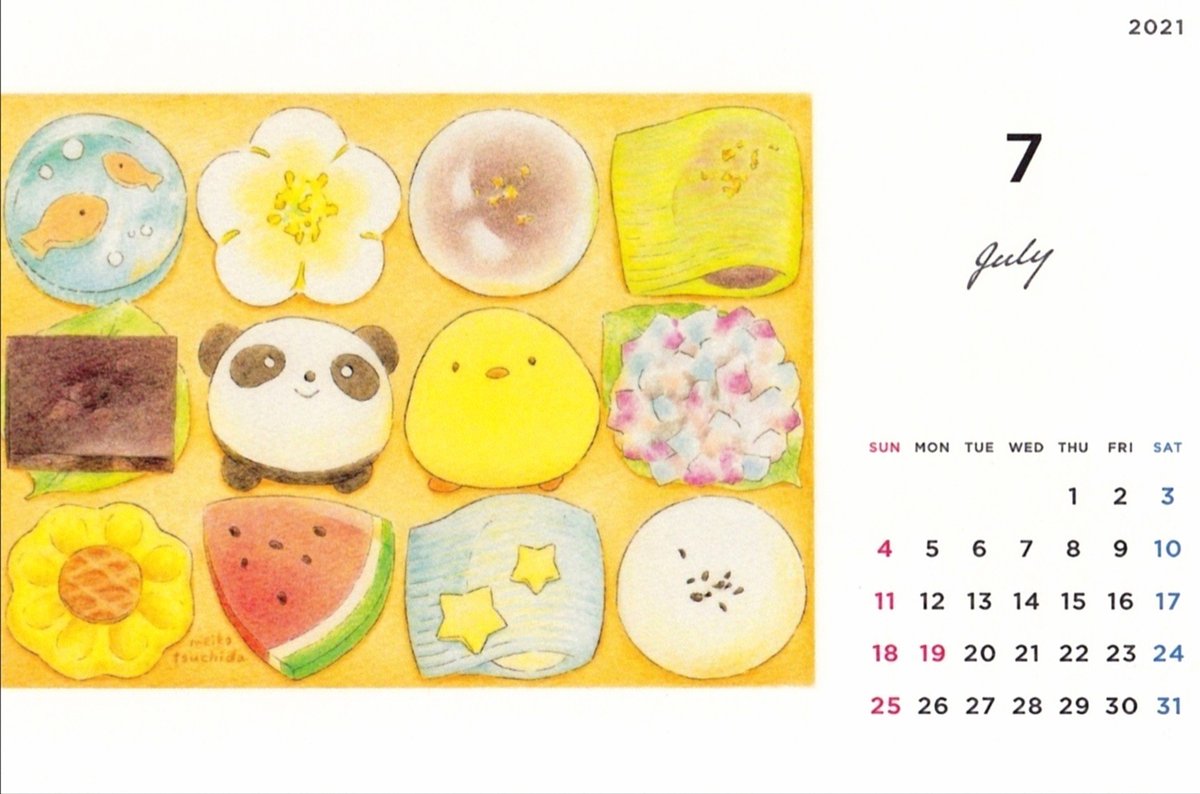 1 42 7月になりました 夏の和菓子のカレンダー🍉 #イラスト #カレンダー #色鉛筆 21/07/01 11:51