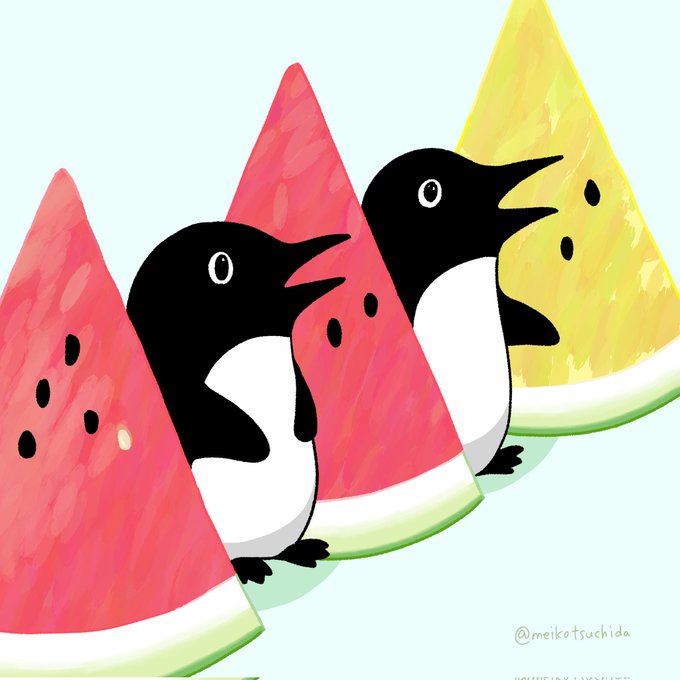 ペンギンとスイカ🍉 #イラスト #みんなで楽しむTwitter展覧会